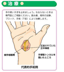 ・当院ではminiOpen法といって手首に1cm、手のひらに2~3cm程度の小さな創で確実な神経の解放をおこないます。